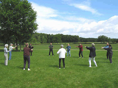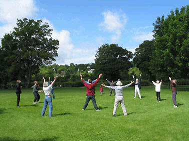 Traditionnellement, la pratique du qi gong se fait dans la nature. Cela permet de concrétiser les sensations qui nous relient au ciel et à la terre. Dans la tradition chinoise, le ciel (yang) et la terre (yin) forment un des couples symboliques fondateurs. "le